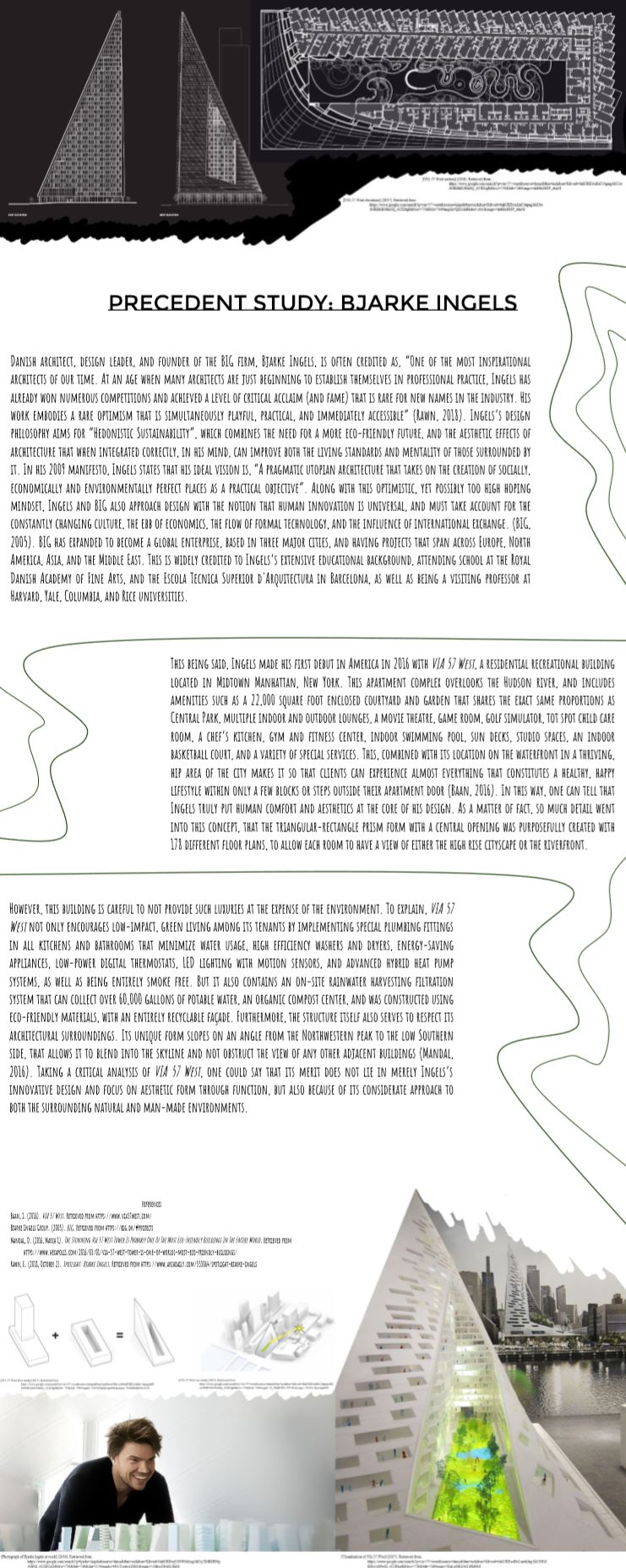 My most recent work, this study was done during my second semester of Design Fundamentals. Focusing on form and historical context, I analyzed the work of Bjarke Ingels and his firm, BIG.